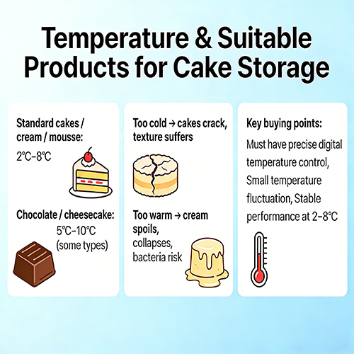 كعك، موس، كريمة → مُبرّد بمروحة، 2–8℃
