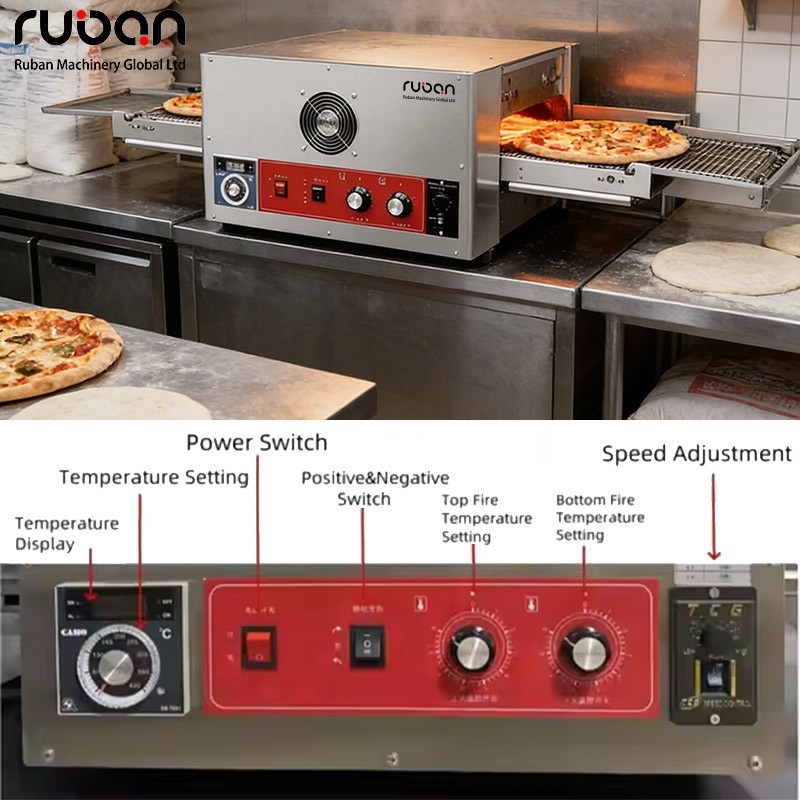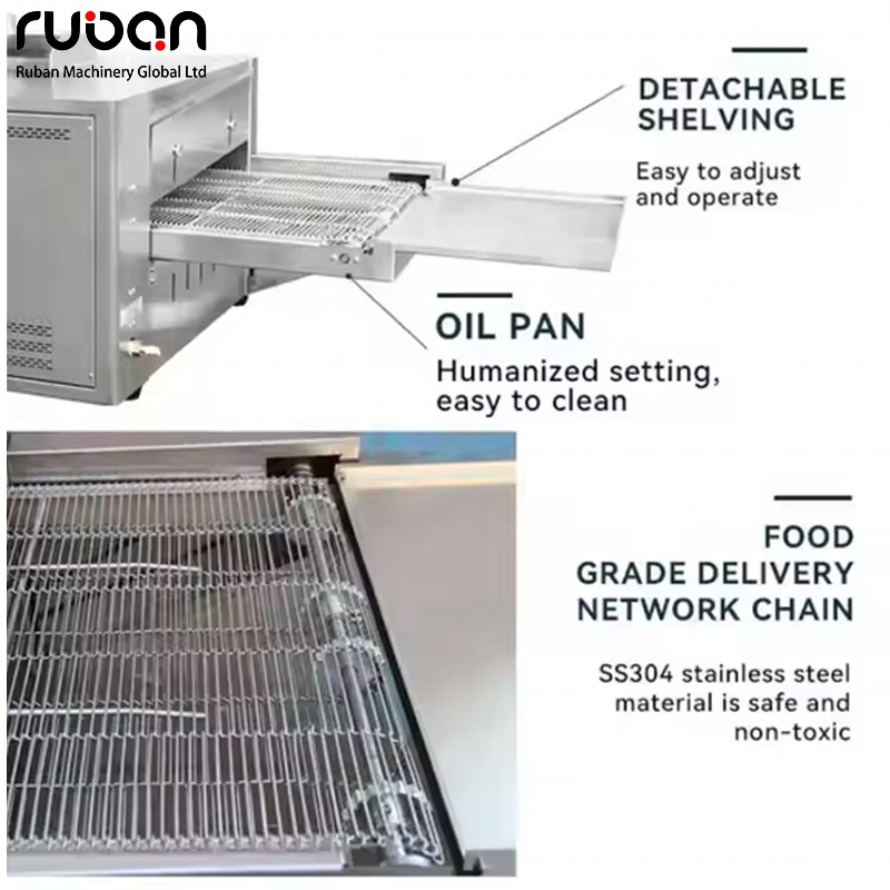1. فرن البيتزا ذو السير المتحرك مصنوع بالكامل من الفولاذ المقاوم للصدأ 304.