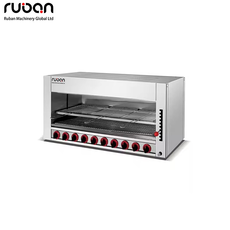 صُممت شواية السلمندر الغازية التجارية شديدة التحمل هذه خصيصًا للطهي الاحترافي على درجات حرارة عالية. مصنوعة من الفولاذ المقاوم للصدأ المتين، وتتميز بشعلات متعددة مستقلة، وارتفاع قابل للتعديل، ونظام تحكم مزدوج في الحرارة لتحمير وتذويب وتسخين دقيق. مثالية للمطاعم والفنادق وخدمات الطعام، وتدعم كلاً من غاز البترول المسال والغاز الطبيعي.