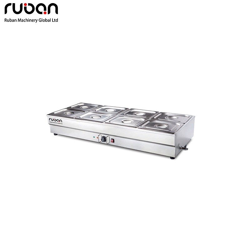 هذا الحمام المائي الكهربائي التجاري مصنوع من الفولاذ المقاوم للصدأ السميك والمتين، ومزود بمنظم حرارة دقيق لتسخين الطعام بشكل متساوٍ. يسهل صنبور التصريف عملية تفريغ الماء، ويضمن التصميم سهل الاستخدام تشغيلاً موثوقاً وسهلاً. مثالي للمطاعم والفنادق والكافيتريات وخدمات التموين، ويتوفر بخيارات 2/4/6/8 أحواض، مع واقي زجاجي اختياري للحماية من الرذاذ لضمان النظافة أثناء الخدمة الذاتية.