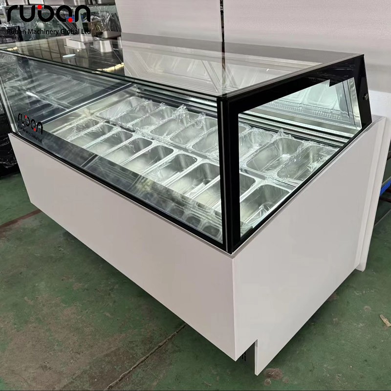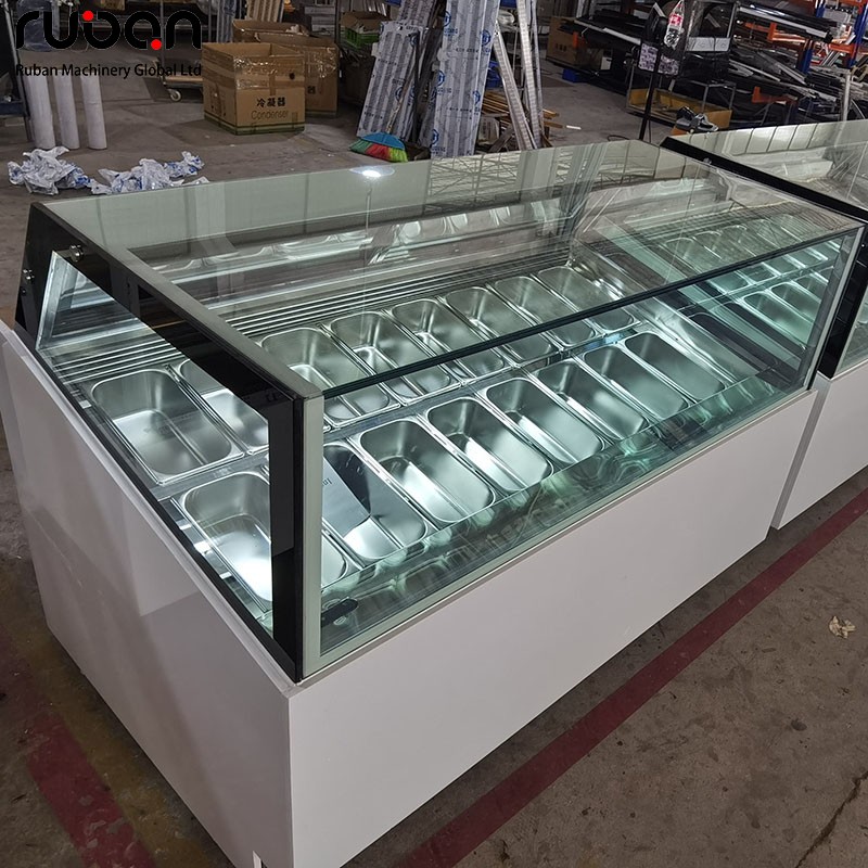 ثلاجة عرض الآيس كريم ذات الزاوية القائمة هي نوع من معدات سلسلة التبريد التجارية، وتتميز بتصميمها الزجاجي ذي الزاوية القائمة. هيكلها الرئيسي مصنوع من الفولاذ المقاوم للصدأ، مع سطح عرض زجاجي شفاف مقوى، ومجهزة بفتحات معدنية متعددة في الداخل. صُممت خصيصًا لعرض وتخزين الحلويات الباردة المجمدة مثل الآيس كريم والمثلجات، وهي مناسبة للأماكن التجارية مثل محلات الحلويات ومحلات شاي الحليب والبوفيهات. لا يُحسّن شكلها ذو الزاوية القائمة من استغلال المساحة فحسب، بل يجعل أيضًا المظهر العام لمنطقة العرض أكثر ترتيبًا، مما يسمح للزبائن باختيار المنتجات بسهولة.