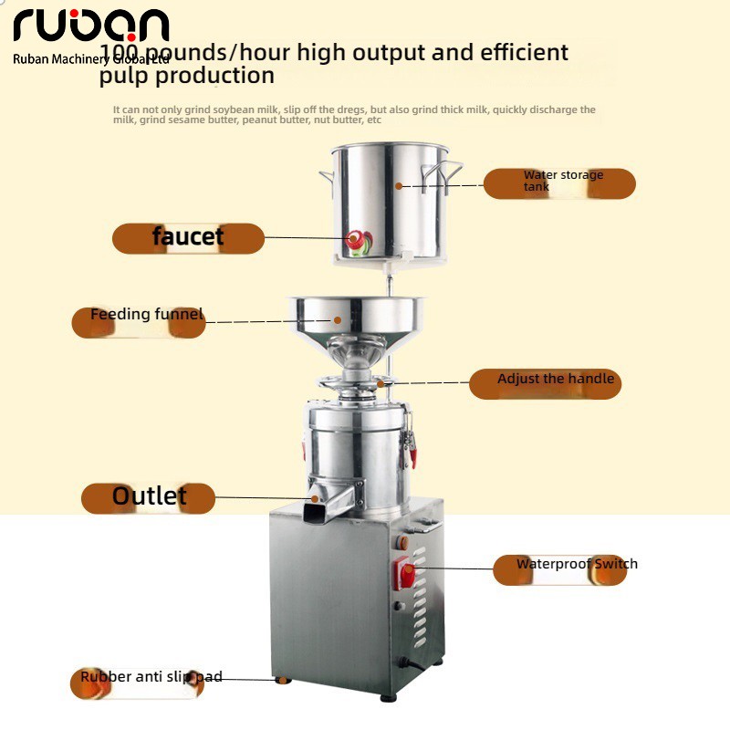 هذه الآلة لمعالجة اللب هي معدات تجارية عالية الجودة، تتميز بكفاءة عالية في عملية اللب. وهي مناسبة لمعالجة مكونات مثل السمسم وفول الصويا والفول السوداني. مصنوعة من الفولاذ المقاوم للصدأ، وتتوافق مع معايير النظافة الغذائية. يوفر تصميمها العمودي مساحة، كما أنها سهلة التشغيل والتنظيف، مما يلبي احتياجات الإنتاج اليومية للمطاعم وورش العمل الصغيرة لتصنيع الأغذية.