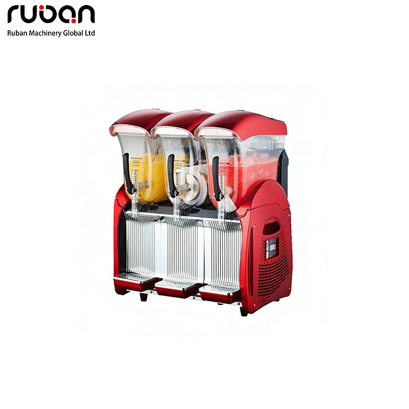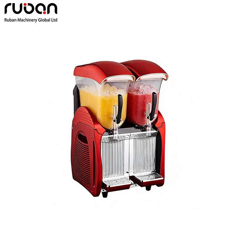 تتوفر آلة صنع السلاش هذه بنماذج أحادية الأسطوانة، وثنائية الأسطوانة، وثلاثية الأسطوانات. هيكلها مصنوع بشكل أساسي من الفولاذ المقاوم للصدأ، مع أسطوانة تخزين شفافة من مادة البولي كربونات مزودة بصمامات توزيع حمراء لسهولة الاستخدام. تتميز الآلة بنظام تبريد مستقل وضاغطات مستوردة، مما يوفر كفاءة تبريد عالية تمكنها من إنتاج السلاش خلال 30-45 دقيقة. تعتمد الآلة على نظام نقل مغناطيسي كهرومغناطيسي، مما يضمن تشغيلًا هادئًا وعمرًا طويلًا. الخزان مقاوم لدرجات الحرارة العالية والمنخفضة، وسهل الفك والتنظيف. الآلة سهلة النقل والصيانة، ومناسبة لتحضير السلاش، والعصائر، وغيرها من المشروبات في الأماكن التجارية مثل محلات الشاي بالحليب، ومقاهي الإنترنت، والمطاعم.